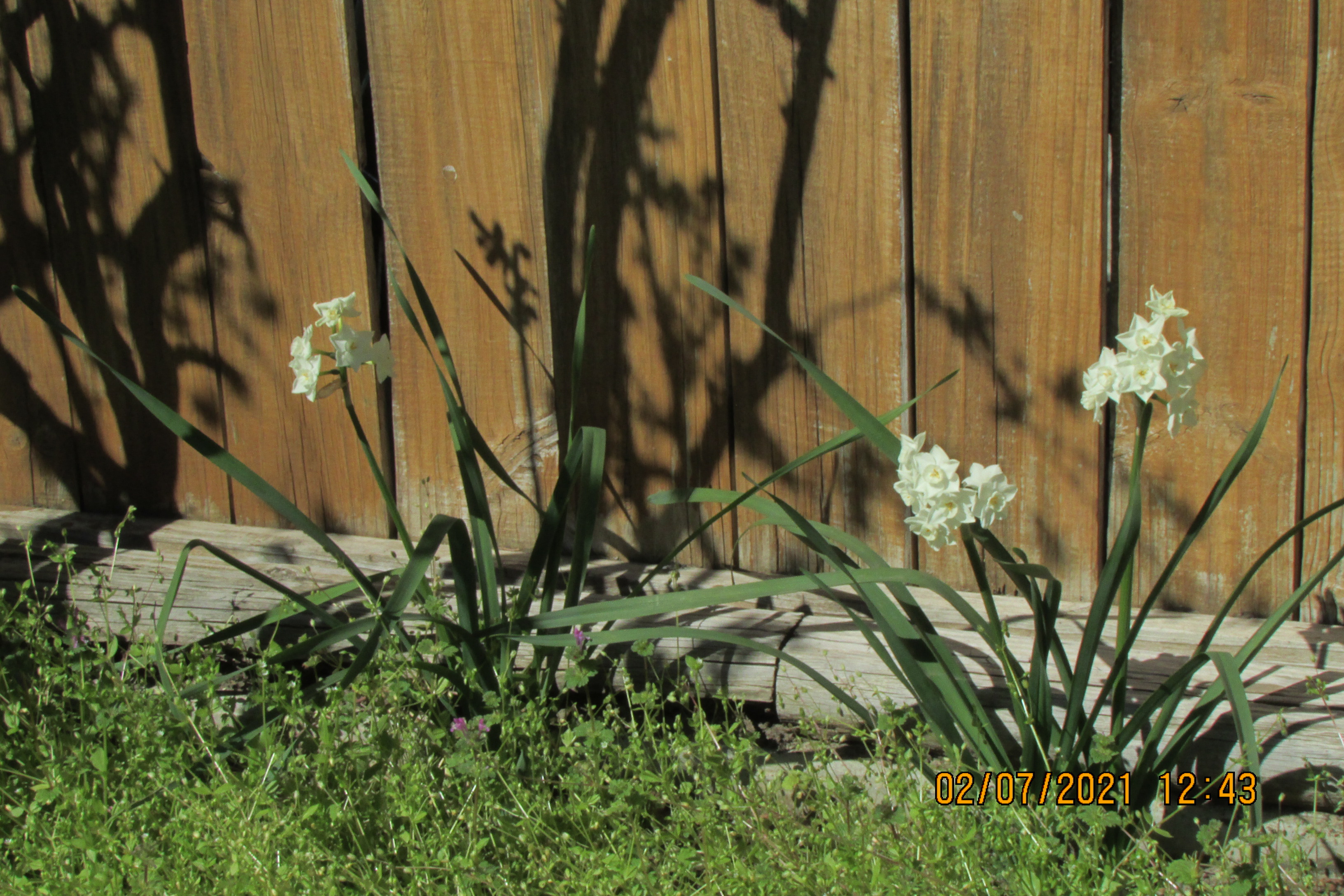 It was such a delight to look out in my yard and see Narcissus blooming. I haven’t done any gardening here; I’m enjoying the flowers and rose bushes planted by the previous resident. I look forward to Spring!!