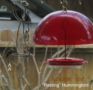 That little Hummingbird sat, motionless, for several minutes. It is rare to see them “sitting”—and even rarer to capture an image. Today was my “day of rest.” I watched—and listened—to TV church. Tomorrow I return to the downsizing project (because we have beautiful weather). “Climbing the family tree” must wait for inclement weather?!