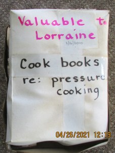 Frankly, I hate to throw things away. I don’t think I’m a hoarder; I just keep things because “I might need it someday.” OR, my recent intention to give away genealogy and household miscellaneous. With a few exceptions, I think a lot of things will end up in the trash.