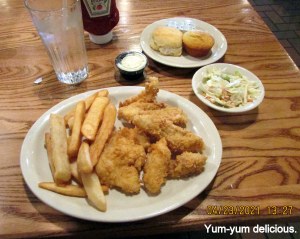 While “lost” and trying to find my way home, I saw Cracker Barrel. I almost never go into a nice “sit down” restaurant to dine alone. This was an exception!! I didn’t even look at the prices before I ordered!! “Fish” would be a treat.