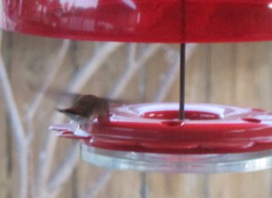 The Hummingbird feeders were empty. I’m in the process of making a double batch of nectar. Since the twelfth, I’ve filled feeders a couple of times!! Perhaps too few flowering plants for Hummingbirds to feed upon? In Livingston, Texas (and North Carolina), I had flowering plants specifically for Hummingbirds, butterflies, and bees. The rose bushes in my yard (Waco) obviously do not provide nectar.