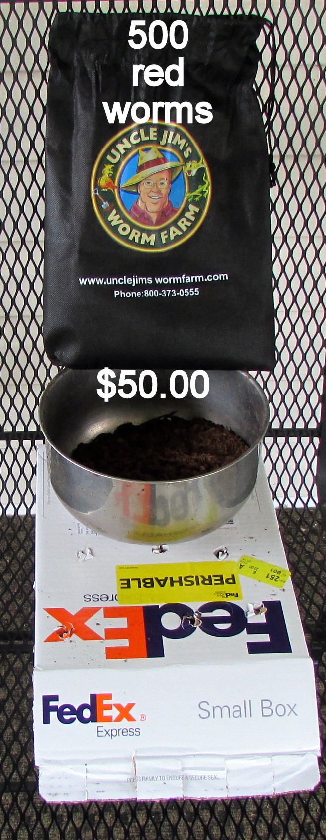 Look at the amount of money I paid for 500 worms. However, they must have been microscopic in size because these old eyes didn’t see a single wiggler. When I ordered… I believed 500 worms would be “more than enough” for my Tower, and the Tower of my new gardening-friend neighbor. The contents of that little bag were dumped in the tube in hopes “they” were “microscopic” hibernating worms that will begin composting in their new home. ~~~~ Uncle Jim’s Worm Farm is a disappointment.