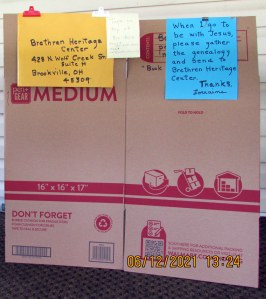 POSTSCRIPT @ 1:30 PM: An old lady has got to do what an old lady’s got to do?! Perhaps “Yours truly” will enjoy several more years of expanding her Ancestry family tree. She hopes, and prays, the remaining library of genealogy will be shipped to the Brethren Heritage Center.