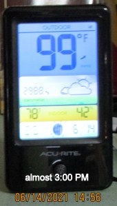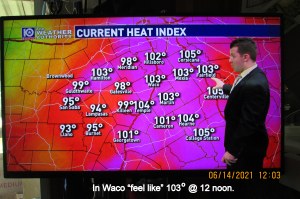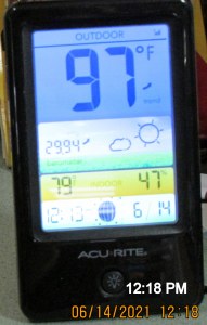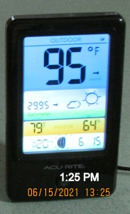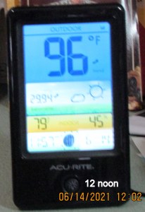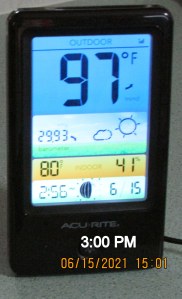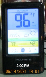 The Texas power grid is overloaded and we are asked to “conserve energy.” It isn’t even 9:30 in the morning and the heat and humidity forced me to turn on both air-conditioners. I did spend a few minutes in the yard watering the plants. ~~ “Deliberate disobedience,” furthermore, because I’ll spend the day sitting at the computer when “too much sitting” isn’t good for Lorraine’s “power grid.”
