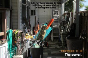 This morning, the collapsed table—and all the things piled on it—spurred this old lady to search for something to remedy the disaster. Gratefully, among my overabundance of possessions, I have this plastic table. Until the “downsizing” is complete, I need this “work surface.”