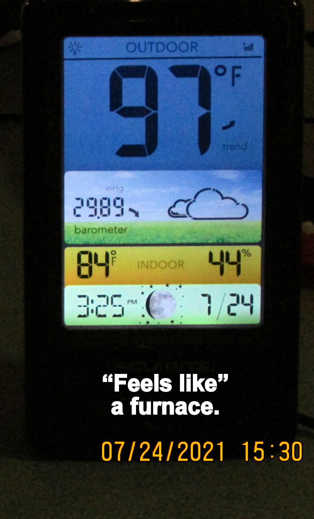 Projected “feels like” temperature: 105 degrees. Projected projects accomplished: 10. Have you heard: NBC reports that fewer folks are watching the Olympics. I’m not watching; I’m not interested. With a broken toe, “feels like” a good reason to sit at the computer and “climb the family tree.” Excuses, excuses!!