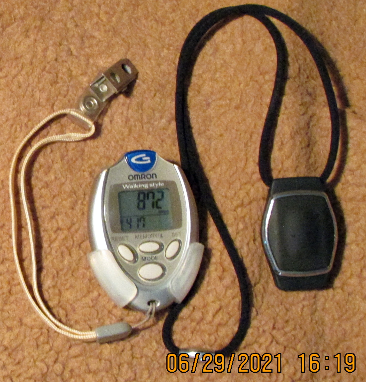 Miserably hot and humid but I walked (about 3:00 PM) to check the Lively Wearable against the Omron pedometer. “Lively” registered 586 steps and Omron registered 789 steps. That’s a big difference (in my humble opinion) and I’ll rely on the old-fashioned pedometer (thank you). Here is a link to the image on eBay. When I purchased mine (many years ago), it cost about $40.00. In the manual, I have notes dated 2005 and 2008 so proof it’s an “oldie” and still “a goodie.”