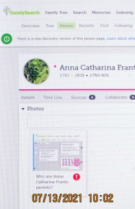 Tiger by the tail and can’t let go !! Jul13 by Lorraine Frantz Edwards First: I created an image disputing the listed parents of Anna Catharina Frantz. Second: I uploaded the image to FamilySearch. Third: There it is for everyone to see!! Forgive me? I cannot ignore this misinformation. Share this: Click to share on X (Opens in new window) X Click to share on Facebook (Opens in new window) Facebook Like Loading...