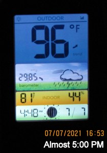 Postscript at 10:30 AM: Lorraine is “wimpy, wimpy, wimpy”!! The heat and humidity are unbearable. She prefers a pleasant temperature indoors and the sweet smell of essential oils.
