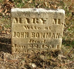 An army of volunteers document individuals buried in cemeteries and the information is dispersed through Find A Grave. I emailed the person who photographed and published the tombstone for “Mary M. wife of John Bowman.” I asked if he could take a picture that includes the “age” information at the bottom of the tombstone. His biographical information indicates he researches many of the same surnames I research.