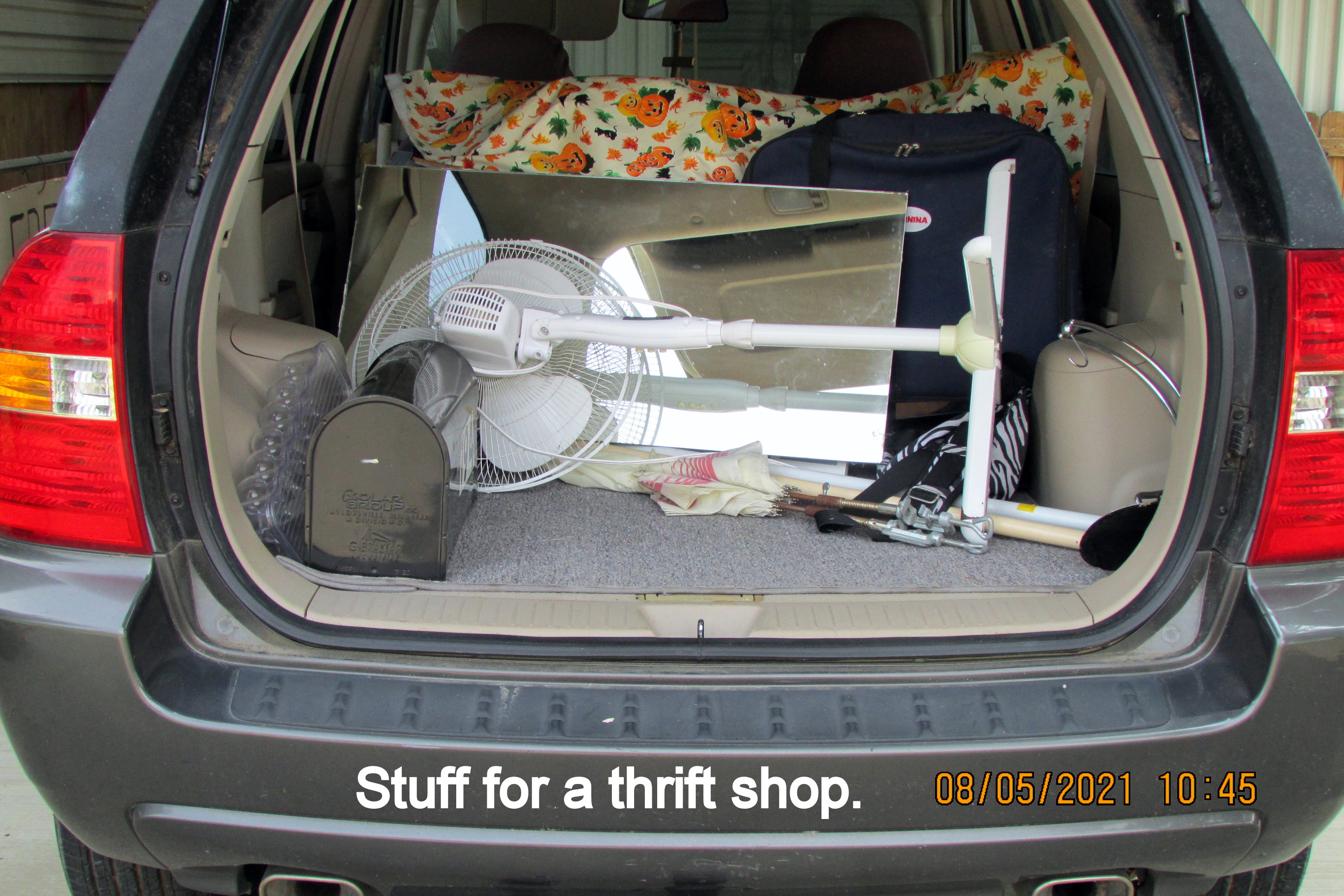 I worked in the carport, and storage, most of the morning. I semi–loaded the back of the KIA with stuff for a thrift shop. Honesty, I didn’t make a dent in the clutter!!