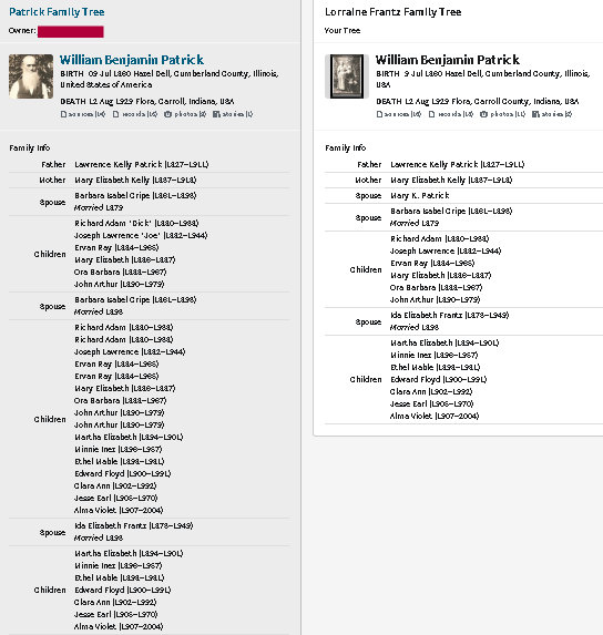 Quite possibly, one hundred (or more) individuals added to my Ancestry database—and a thousand (or more) “sources.” I cannot ignore errors when they come to my attention!! I inadvertently made the same mistake (initially) because four individuals with almost identical birth and death dates. Yes, I caught my error but it has been time-consuming to research and document two marriages, two women named Martha Frantz and two men named Jacob Frantz (and fifteen children). ~~ Check my blog titled God’s gift.