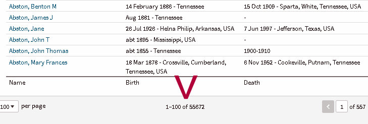 Postscript and another screenprint. Unplanned, I saw that the recent research project added one-hundred seventeen individuals to my database. Remember, it has only been three days since I documented 55,555 (Friday, Saturday, Sunday, forty-eight hours). 🙂