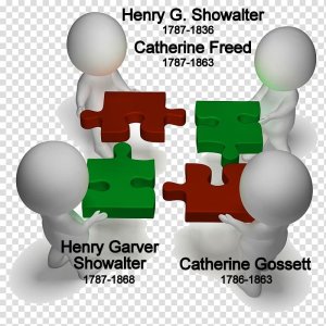 Catherine Freed (born: 20 Jan 1787–died: 9 Jul 1863, Tuscarawas County, Ohio, USA) is not the spouse of Henry Garver Showalter (1787-1868). The confusion regarding the spouse appears to stem from the identical death date with Catherine Gossett (born: 20 Nov 1786–died: 9 Jul 1863, Eldorado, Preble County, Ohio, USA). ~~ Furthermore: Two men with the name Henry G. and Henry Garver Showalter and both identified with the identical birthdate of 26 Sep 1787.