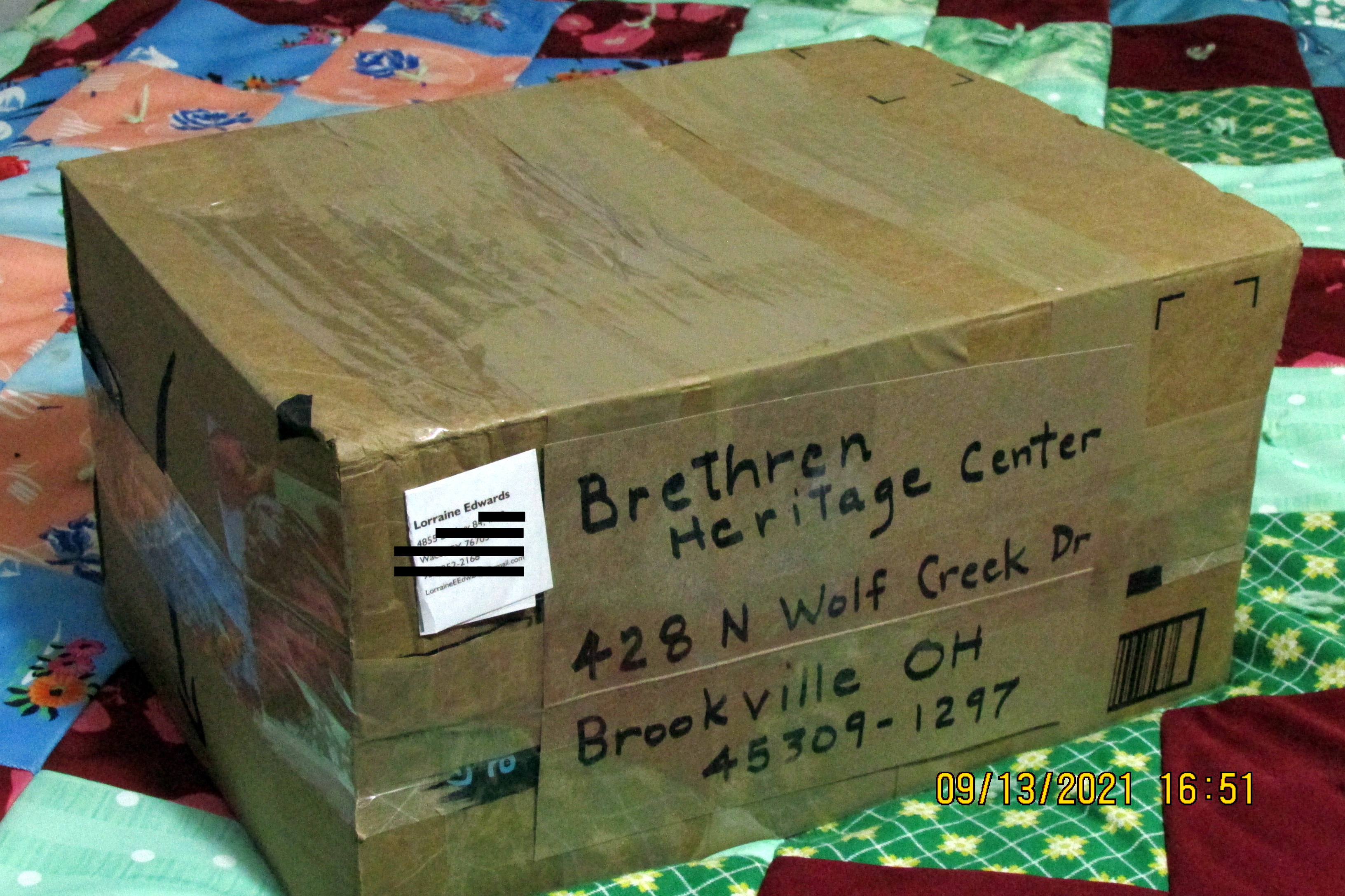 Two hours (more or less) were spent on the downsizing project. Items went into the trash but the praise-worthy accomplishment was packing this box. Smile because this is a box of rocks!! Yes, eighteen pounds of rocks and will be expensive to mail to the Brethren Heritage Center. ~~ My immigrant ancestor, Michael Frantz (1687-1748) was an early preacher in the group later identified as “German Baptist Brethren.” This box contains rocks, and shingles, from the barn where Michael Frantz preached a sermon documented in Brethren’s history. I’ve been assured these relics will be well-received by the Brethren Heritage Center. ~~ I encourage the reader to click this link, It’s a small world after all, and read more details.
