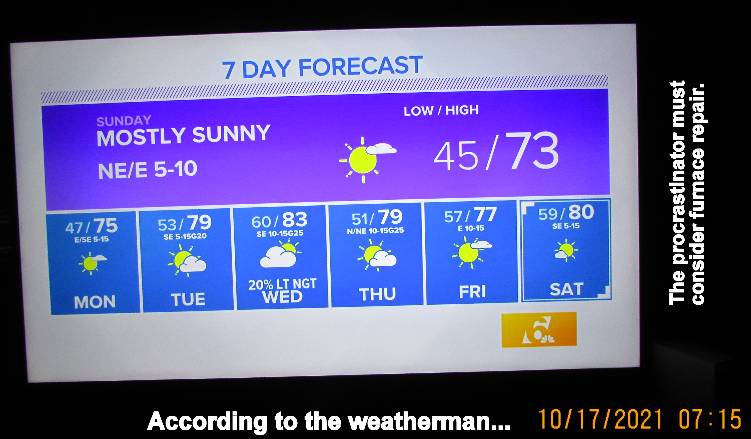 Weather report Oct17 by Lorraine Frantz Edwards “The old lady” is wearing a warm robe and warm slippers. ~~ Not complaining!! Share this: Share on X (Opens in new window) X Share on Facebook (Opens in new window) Facebook Like Loading...