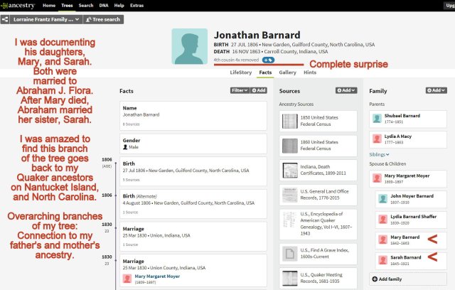 I found a new branch of the tree. When I saw “Lydia Macy” in my “Frantz tree,” I wanted to see if she connected to the Macy’s in my “Coffin tree.” Yes, indeed, I traced her family back to Nantucket Island, Massachusetts. See my Thanksgiving Day blog message for links to my history of those families. This is so fascinating; I can’t walk away!!
