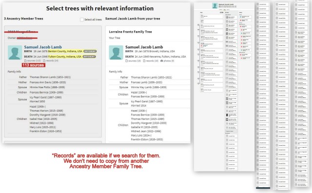 The weather is chilly cold and very windy. This old lady is wearing a sweater—indoors—and has no desire to be outdoors. No climbing the ladder to hang Christmas lights but “climbing the family tree.” ~~ If the Ancestry information (below) was a painting requiring a title, it would have this inscription: “Obvious Evidence of a Major Crime.” In my humble opinion, Ancestry.com should have a built-in filter that prevents Members from copying from one another. That is the most blatant evidence of copying that I have witnessed. Yes, I “copied” the images. Does that make me guilty of the same crime?