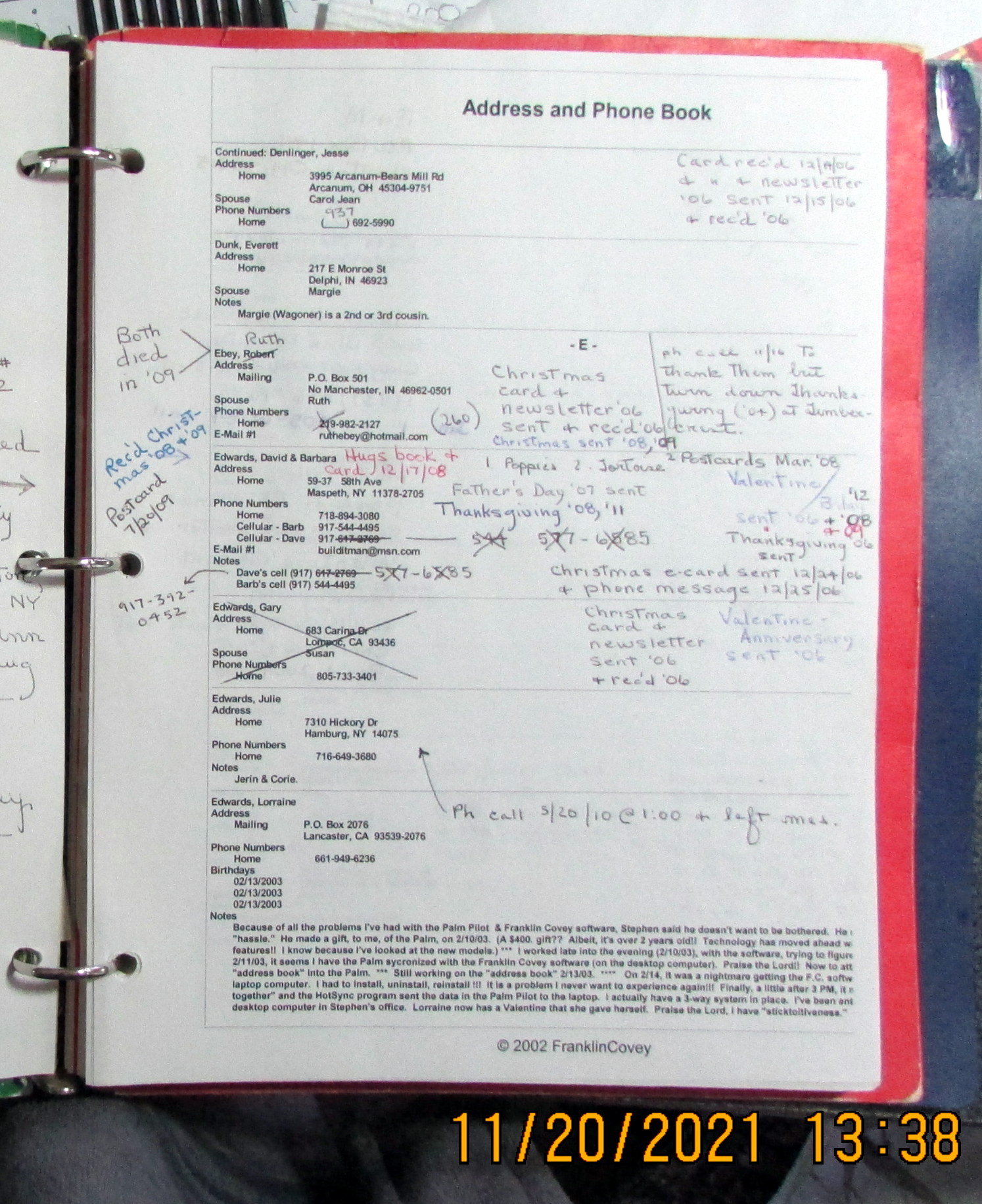 Postscript, almost 4:00 PM: Our mind is a wonderful part of our body. (Duh!) I’d like to believe that my mind was correlating events: (1) Concern for the missionaries who were kidnapped in Haiti, (2) the Eby surname, and (3) my 2nd cousin 3x removed, Alice (King) and Adam Ebey were missionaries to India.