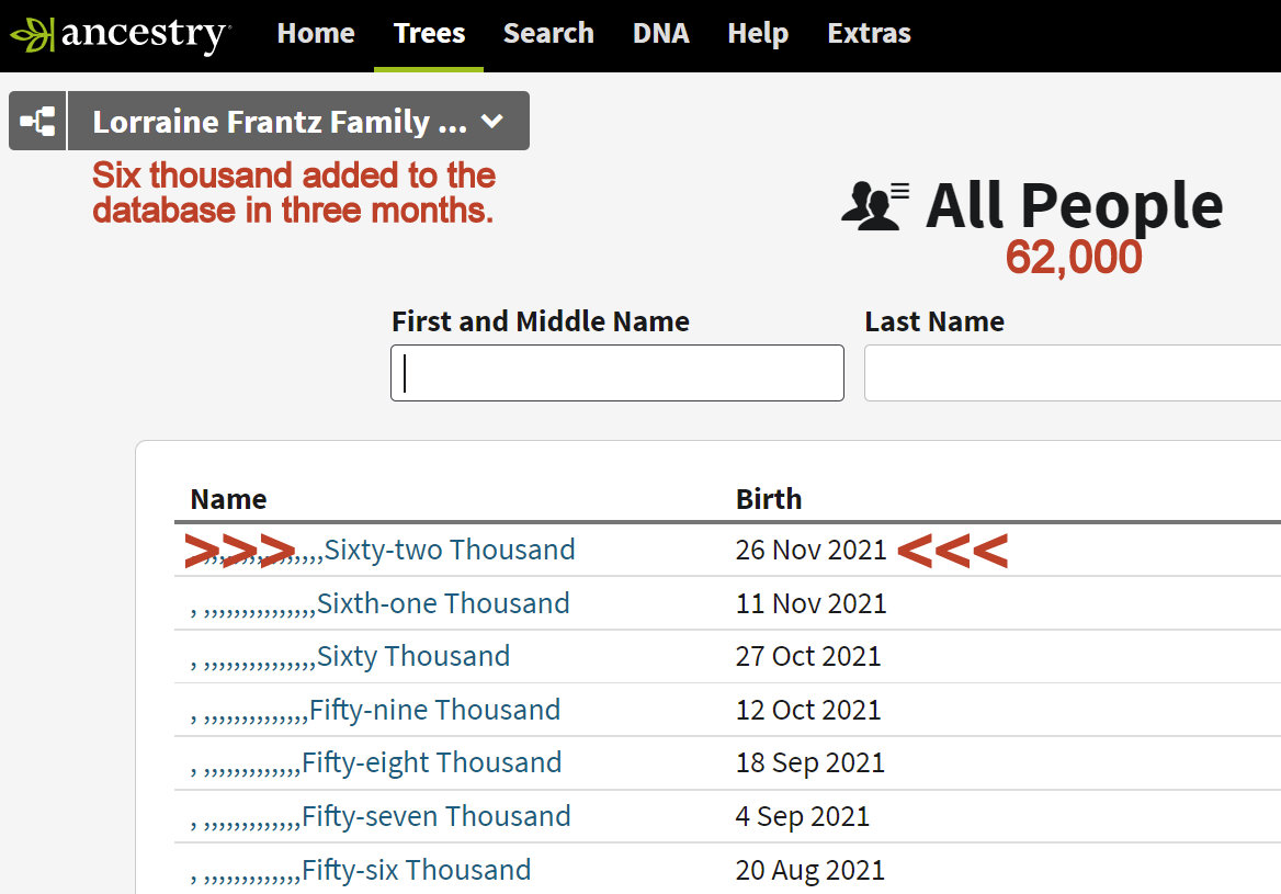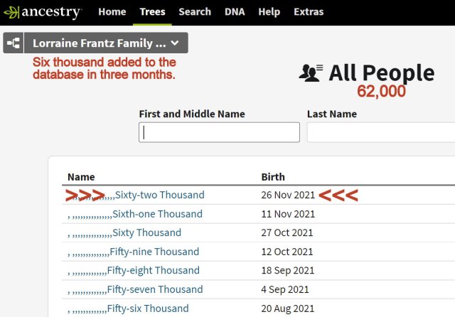 I’m not adding individuals to my database aiming for impressive numbers. I involve myself in searching—and documenting—so I don’t think about being lonely, tired, sleepy, and hungry, I sit too long and my derriere and my legs hurt!! ~~ Emotionally, the holiday season is my worst time of the year. ~~ A bit of history: I was married on this day sixty-nine years ago.