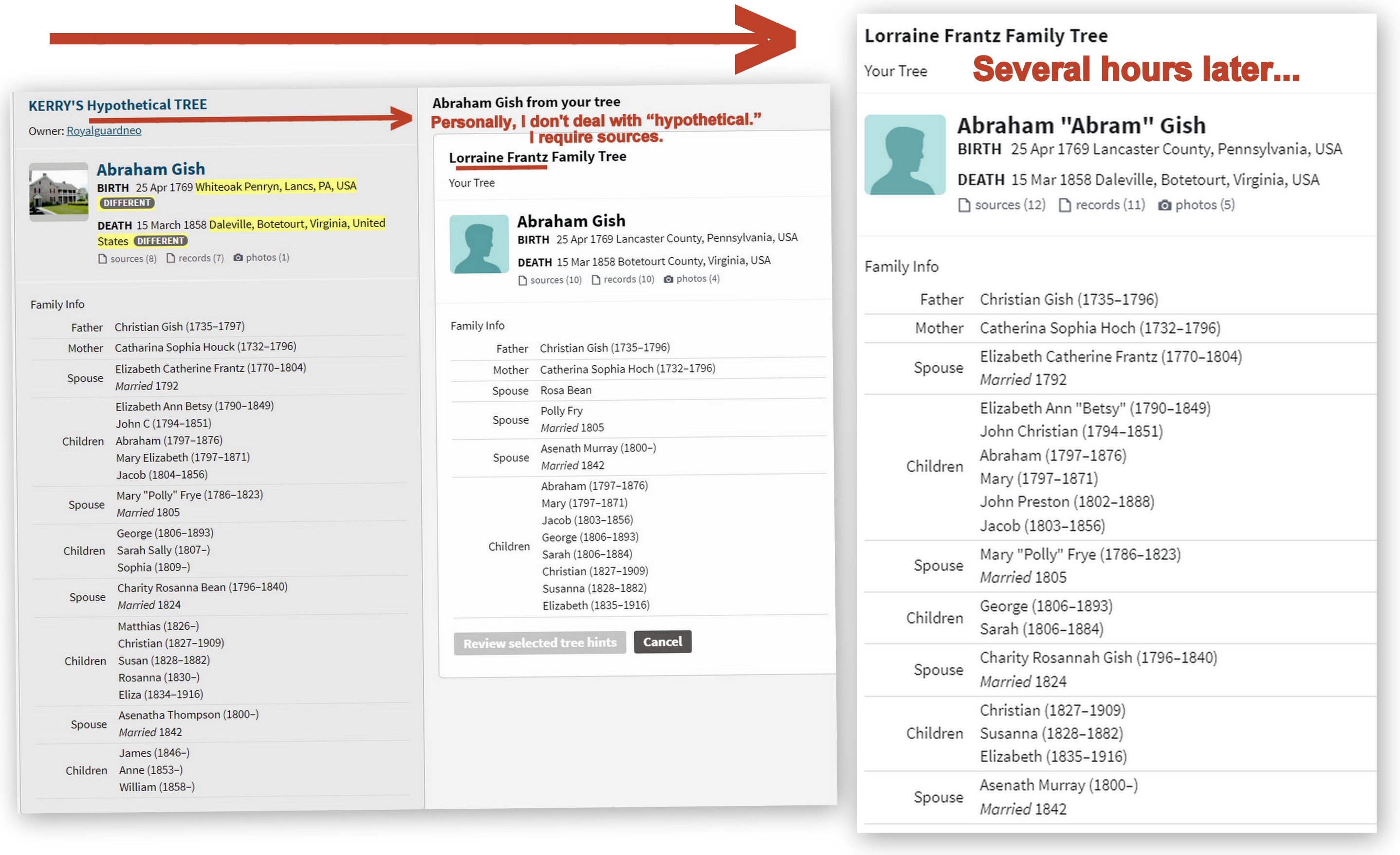 Not so nice ?! Nov27 by Lorraine Frantz Edwards The claws came out this afternoon. See how I responded to “hypothetical.” I’m so weary of careless documentation by some subscribers to Ancestry.com. I really “work” to have accurate—and thorough—documentation. Share this: Click to share on X (Opens in new window) X Click to share on Facebook (Opens in new window) Facebook Like Loading...