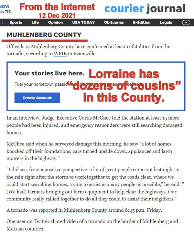 Kentucky cousins Dec12 by Lorraine Frantz Edwards Yes, this genealogist has Kentucky cousins. I’m so heavy-hearted because of the tornado disaster. Please join me in praying for everyone devastated by this terrible weather event. . Share this: Click to share on X (Opens in new window) X Click to share on Facebook (Opens in new window) Facebook Like Loading...