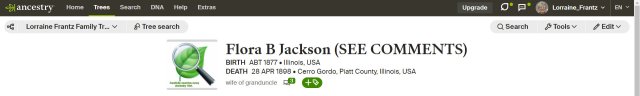 FYI: I stumbled on her (again) while documenting other close family members. Wrong name but right woman. “The janitor“ cleaned up another mess!!