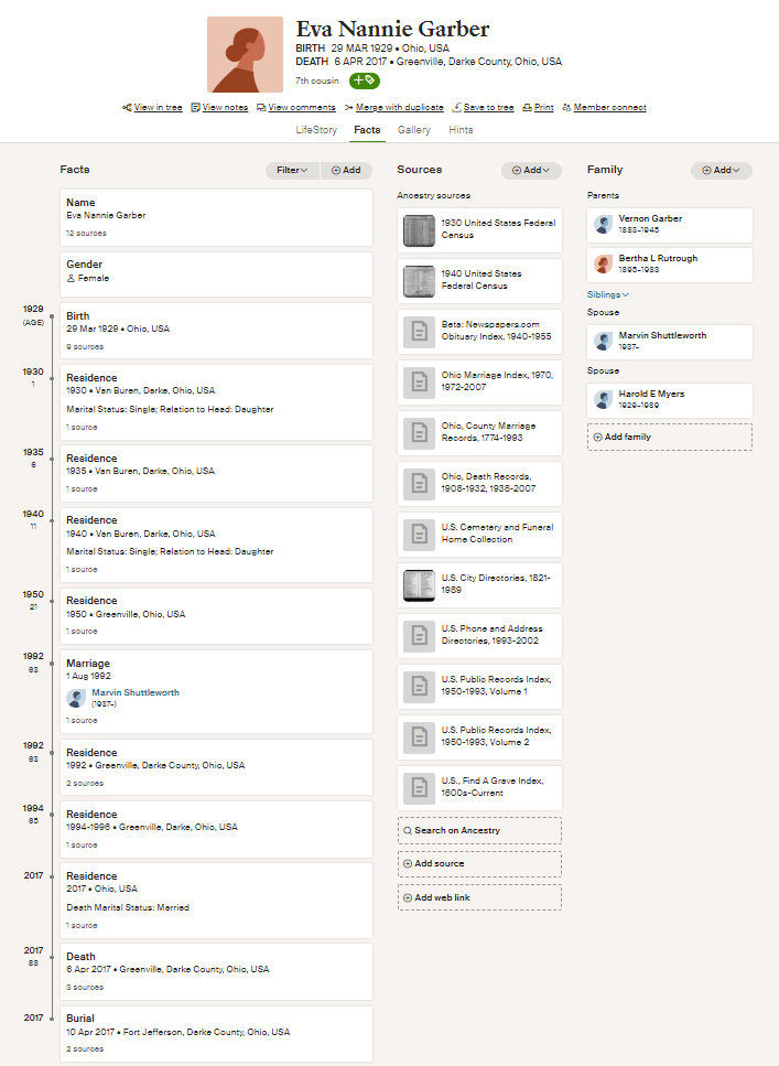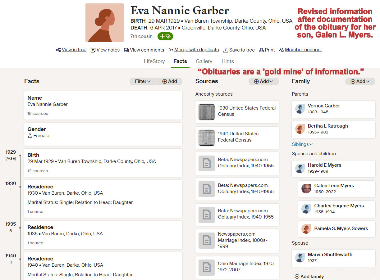 This old lady’s vision is poor but “as I see it,” the image of “Myrtle Blickenstaff” does not match the images of Martha “Mattie” Burgard Blickenstaff. In Ancestry’s “comments,” I verbalized that skepticism a couple of days ago (when I published the earlier blog message). I strive for an Ancestry database that is 200% accurate. The “long story” made short: Remove her…