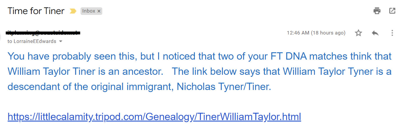 …another DNA test for “Mr. Red.” Eventually, we may receive answers to his mystery ancestor?! ~~ First thing this morning, I received another email message from my DNA cousin with a suggested new DNA relationship for Mr. Red. So I spent the morning exploring that information.