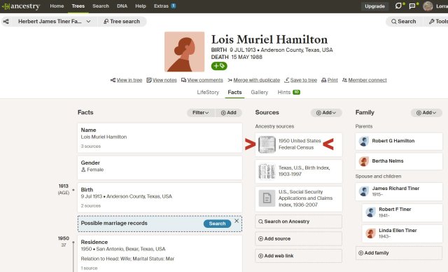 For approximately one hour, on Monday morning, I reverted to my old habit of genealogy while enjoying my first mug of coffee. (One week without Ancestry was torture.) For Father’s Day, I’d like to give “Mr. Red” the answers regarding his third-great-grandfather. During the night of May 3rd, the dream was so vivid, I arose and quickly scribbled the details (so I wouldn’t “forget”). That scribbled note, at my computer, had been tempting me to “climb the family tree.” On Monday, the search was effortless—and I documented the process with several images. The completed image (below) was attached to several individuals. Here is the comment I added: One can dream, can’t one? I hoped for valuable new information… The name “James Richard Tiner” was previously unknown to me. Our brain is a miraculous computer and my brain might have “seen” information that I missed.