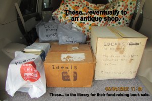 The website for the Waco Library says “contact us.” I sent them a thoroughly detailed email message—and have not received a reply. “They” have my phone number and email address. ~~ Boxes of poem books have been in the car–ready for delivery—since May 4th. Other boxes of books are ready to load. **If** I decided to go shopping for groceries, there is no space for purchases. ~~ “Frustrating,” because, with limited energy, I work on projects with limited results.