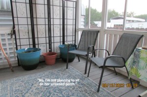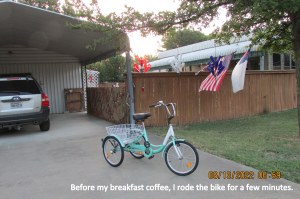I was “tired” when I got up at 6:30 this morning. (1) I watered the plants in the neighbor’s yard. (2) I enjoyed coffee with the guys, at the clubhouse. (3) Another “traveling” neighbor’s yard needed tender loving care (and I was there). (4) “Motivated”… I worked in my yard for more than an hour. (5) Hot, and very tired, “the old lady” retreated to her comfortable chair. (6) Prepared this blog message…
