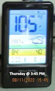 Better days are anticipated. SINCERE THANKS to friends for email best wishes. I do not have the energy to prepare and send personal answers. Please accept my apology. For four days, I did not open the front door and venture outdoors. Early this morning, I ventured into the yard to position the sprinkler and water the dying lawn. ~~ I spent time (today) “climbing the family tree” for a cousin. He requested and I responded (because I am an editor for his tree). Most of the time, I am “gliding” in my easy chair.