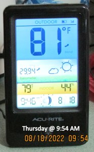 Better days are anticipated. SINCERE THANKS to friends for email best wishes. I do not have the energy to prepare and send personal answers. Please accept my apology. For four days, I did not open the front door and venture outdoors. Early this morning, I ventured into the yard to position the sprinkler and water the dying lawn. ~~ I spent time (today) “climbing the family tree” for a cousin. He requested and I responded (because I am an editor for his tree). Most of the time, I am “gliding” in my easy chair.