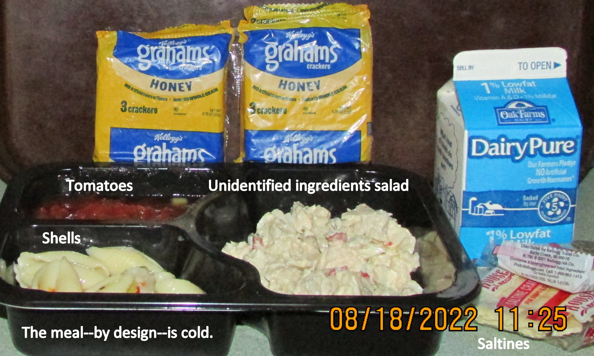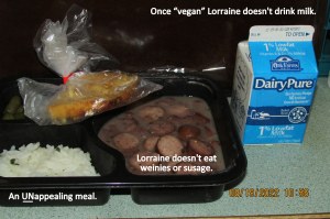 POSTSCRIPT @ 11:10 AM: I ought to be thankful for Meals on Wheels but the food items are things I rarely or never eat.