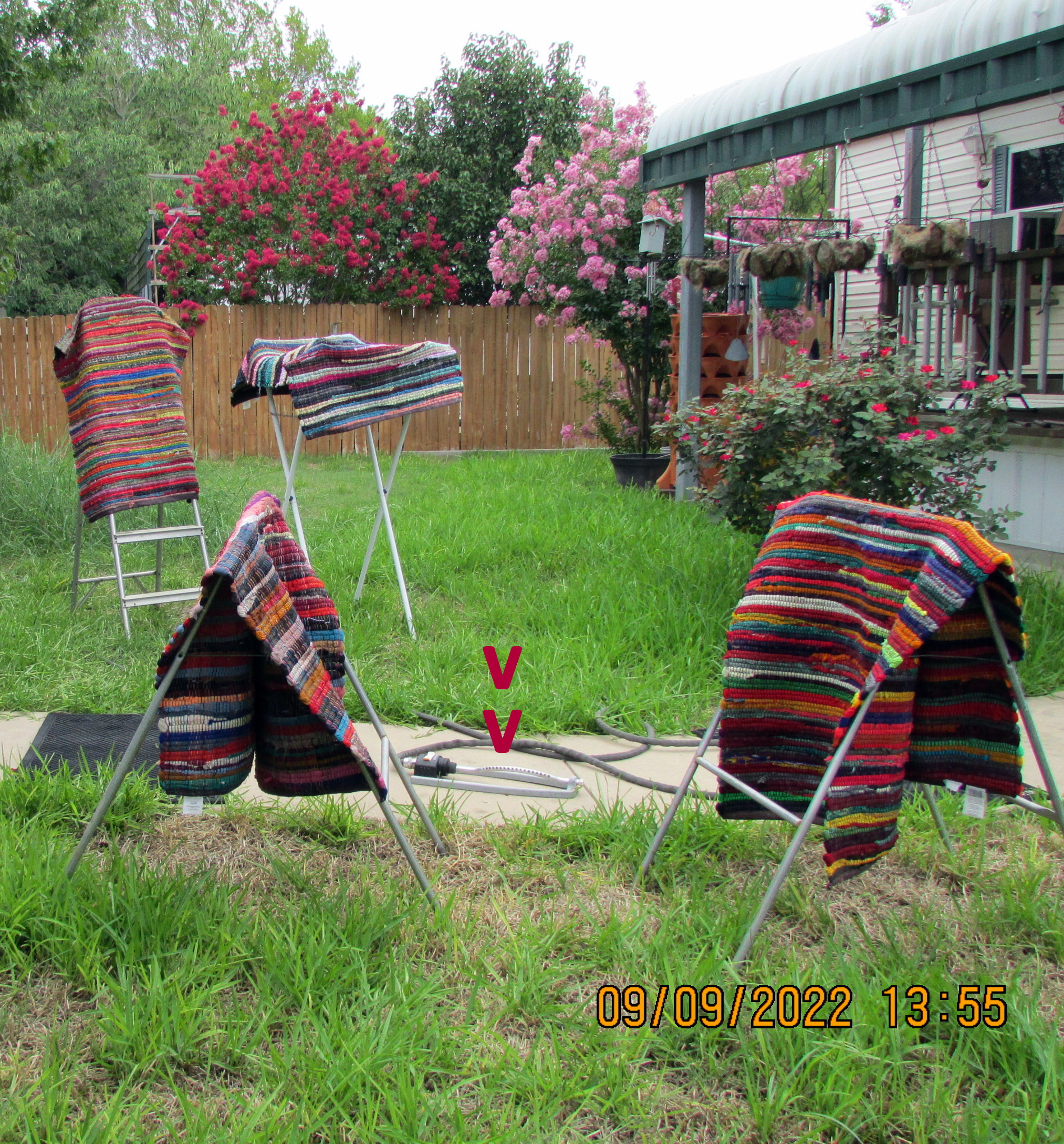Hose the throw rugs at Shawn’s. While she is away from home, I am watering her plants. Earlier, there was an attempt to vacuum the throw rugs but the vacuum cleaner did (almost) irreparable damage. Moving the heavy wet rugs was much–needed exercise for this sedentary arborist (climbing trees, climbing the family tree). ~~ Look at the beautiful blooms on the Crepe Myrtle trees. ~~ Speaking of trees, “the janitor” had to clean up another mess. Note that other Ancestry Member Family Trees listed my cousin with a much earlier death. The obituary information went into the Gallery and this image was prepared to draw attention to the error. Queen of mean?