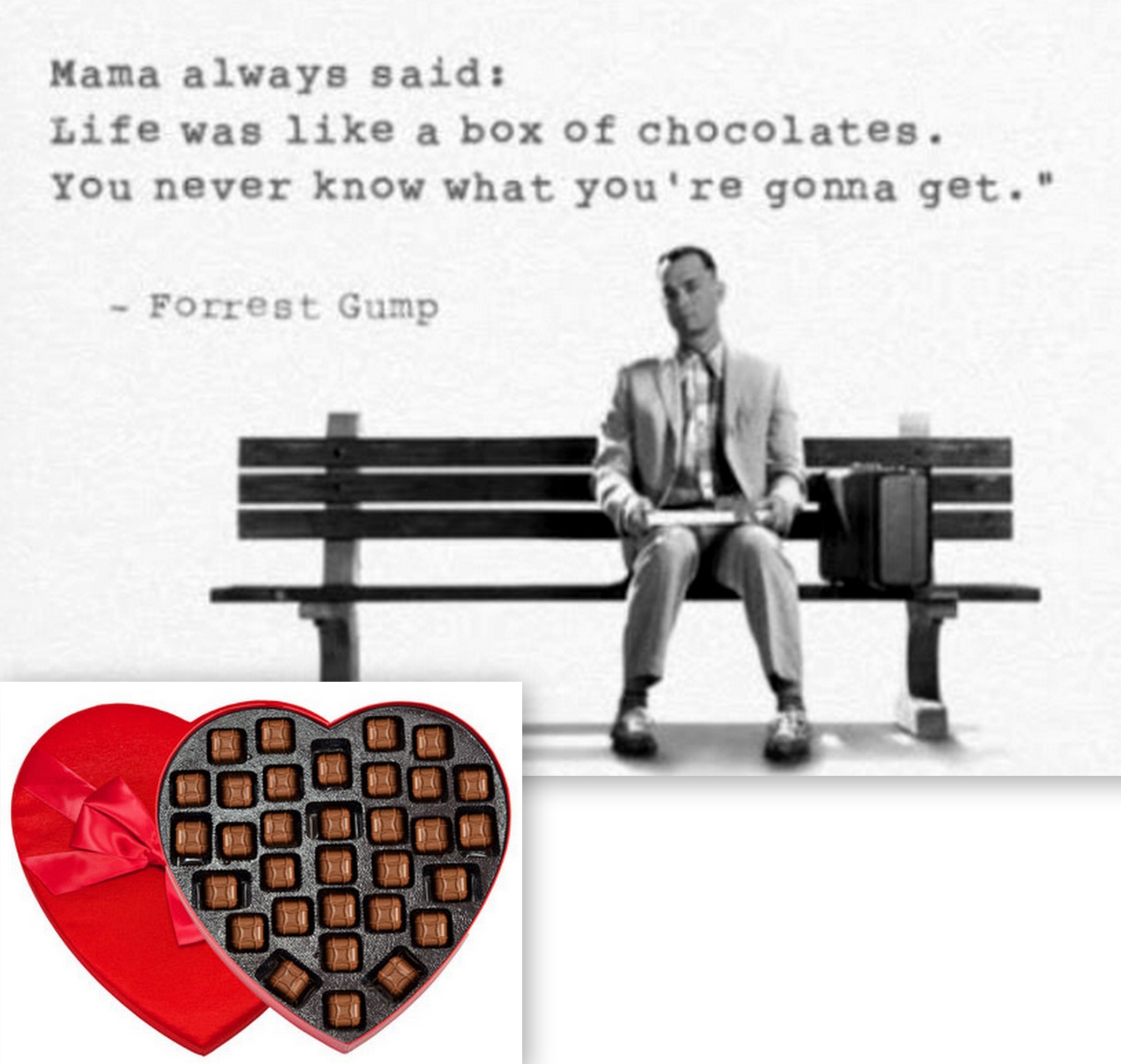 . “Life is like a box of chocolates. You never know what you’re gonna get.”