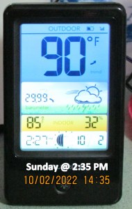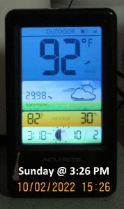 Observation only Oct2 by Lorraine Frantz Edwards First thing in the morning, the furnace but a need for the air-conditioner by mid-afternoon.Not complaining!! Share this: Click to share on X (Opens in new window) X Click to share on Facebook (Opens in new window) Facebook Like Loading...