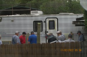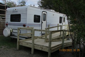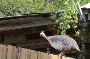 This little fellow was on the fence so I kept my distance (and used the telephoto lens) until he jumped down into my neighbor’s yard. Looks like a turkey to me. I wonder where it came from. ~~ I was in my yard to peek over the fence to see the completed ramp.