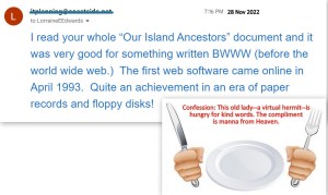 This “taste” of history prompted me to review a booklet I prepared thirty years ago. It is titled 1992 Coffin Family Reunion & Our Island Ancestors. Reading it… held my attention all afternoon. Now this lament: I found an error. I am obsessive-compulsive about accuracy. I “proof” time and time again so mistakes don’t find their way into print.