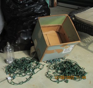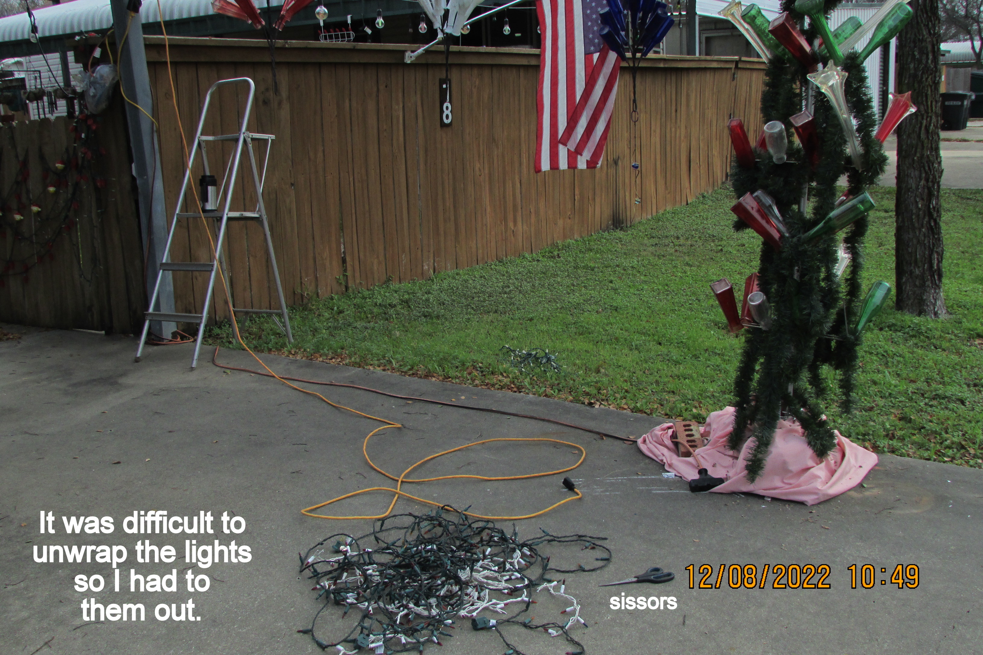 Every effort was made to unwrap the strings of lights. They were “burned out” so finally I decided to cut the strings.