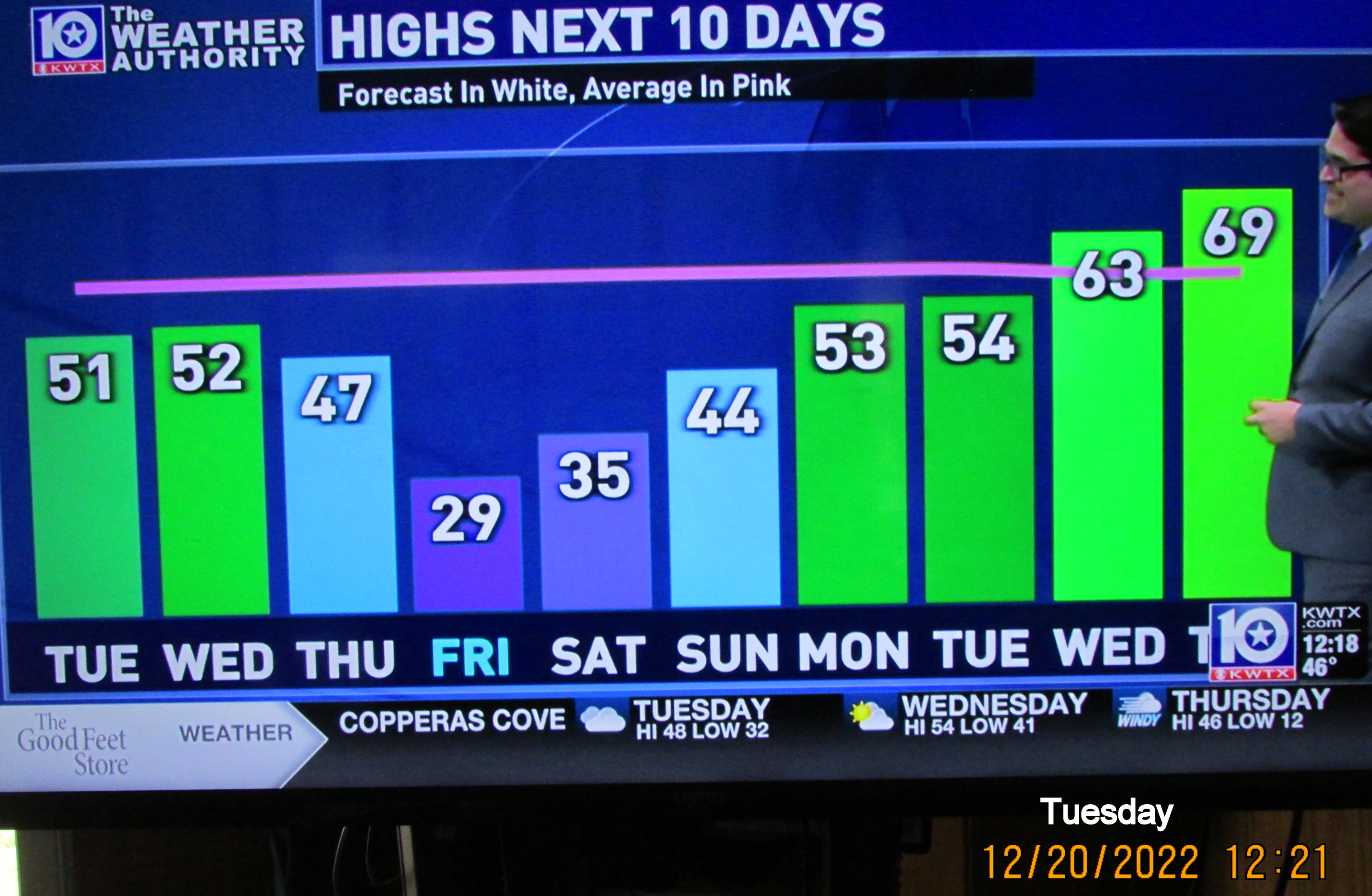 Texas weather Dec20 by Lorraine Frantz Edwards . Share this: Click to share on X (Opens in new window) X Click to share on Facebook (Opens in new window) Facebook Like Loading...