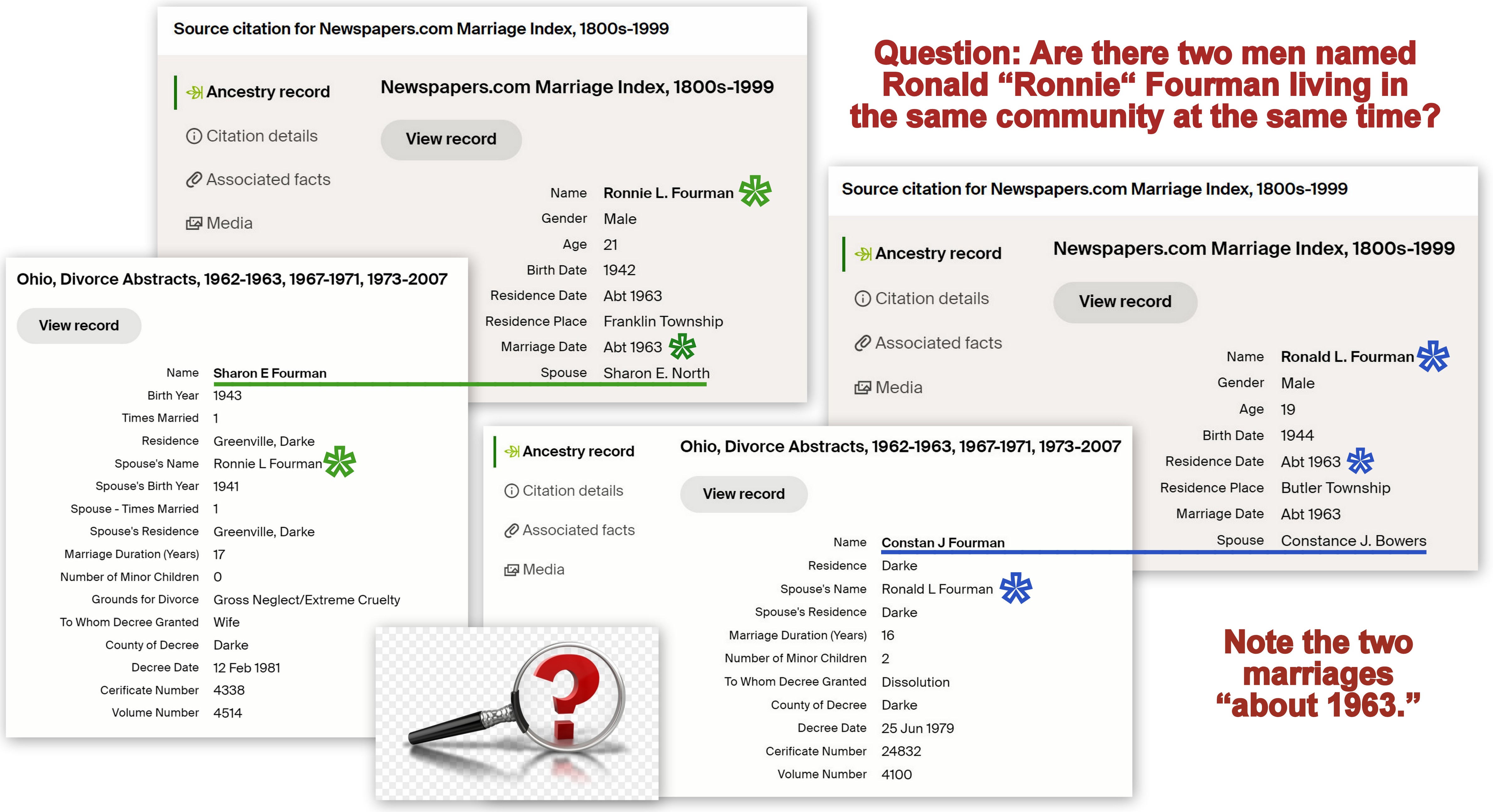 Gratefully, I have propane and my trailer home is warm. Turned off the TV because of the continuous references to “family” festivities. I focused my attention on more research on the Fourman family. I can’t move to another project until I “iron out all the wrinkles.” This family has been a big challenge. ~~ If you look closely at the image, you’ll see what appears to be one man with two families. I was diplomatic and did not ask “Was he a bigamist?” (The image is attached to the man in my Ancestry database.) I must keep searching for a second man with the same name and living in the same community.