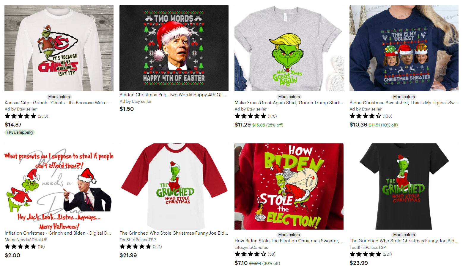 The Biden who stole Christmas Dec26 by Lorraine Frantz Edwards Interesting images appear on shirts. They echo the messages in TV news. “Inflation” is a popular topic. Share this: Click to share on X (Opens in new window) X Click to share on Facebook (Opens in new window) Facebook Like Loading...