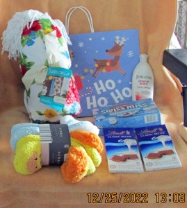Christmas revisited Dec28 by Lorraine Frantz Edwards Pleasant surprise when I took the slipper socks out of their binding. They are delightful—and soft and cuddly like the “throw” that accompanied them. Share this: Click to share on X (Opens in new window) X Click to share on Facebook (Opens in new window) Facebook Like Loading...