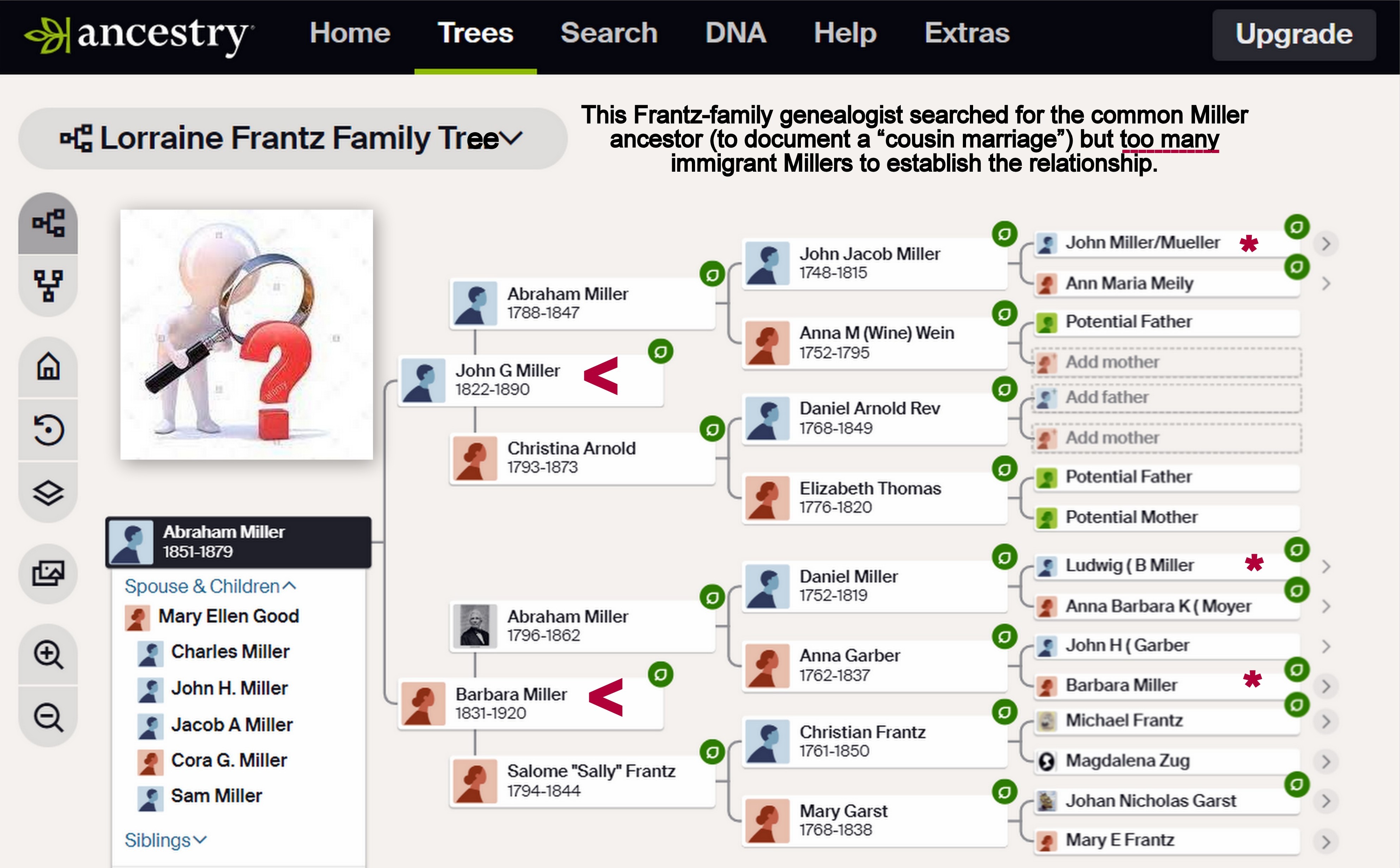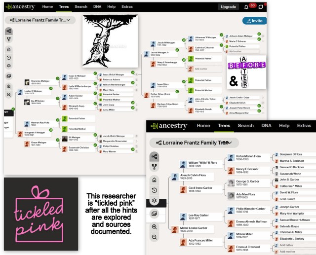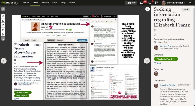 Yesterday, I “stumbled” over Elizabeth Frantz and discovered I’ve neglected her for several years. The image displays my collection of limited information. Below: That’s the way the image appears in Ancestry (in Elizabeth’s record). It will eventually be circulated (in Ancestry) so researchers can see it