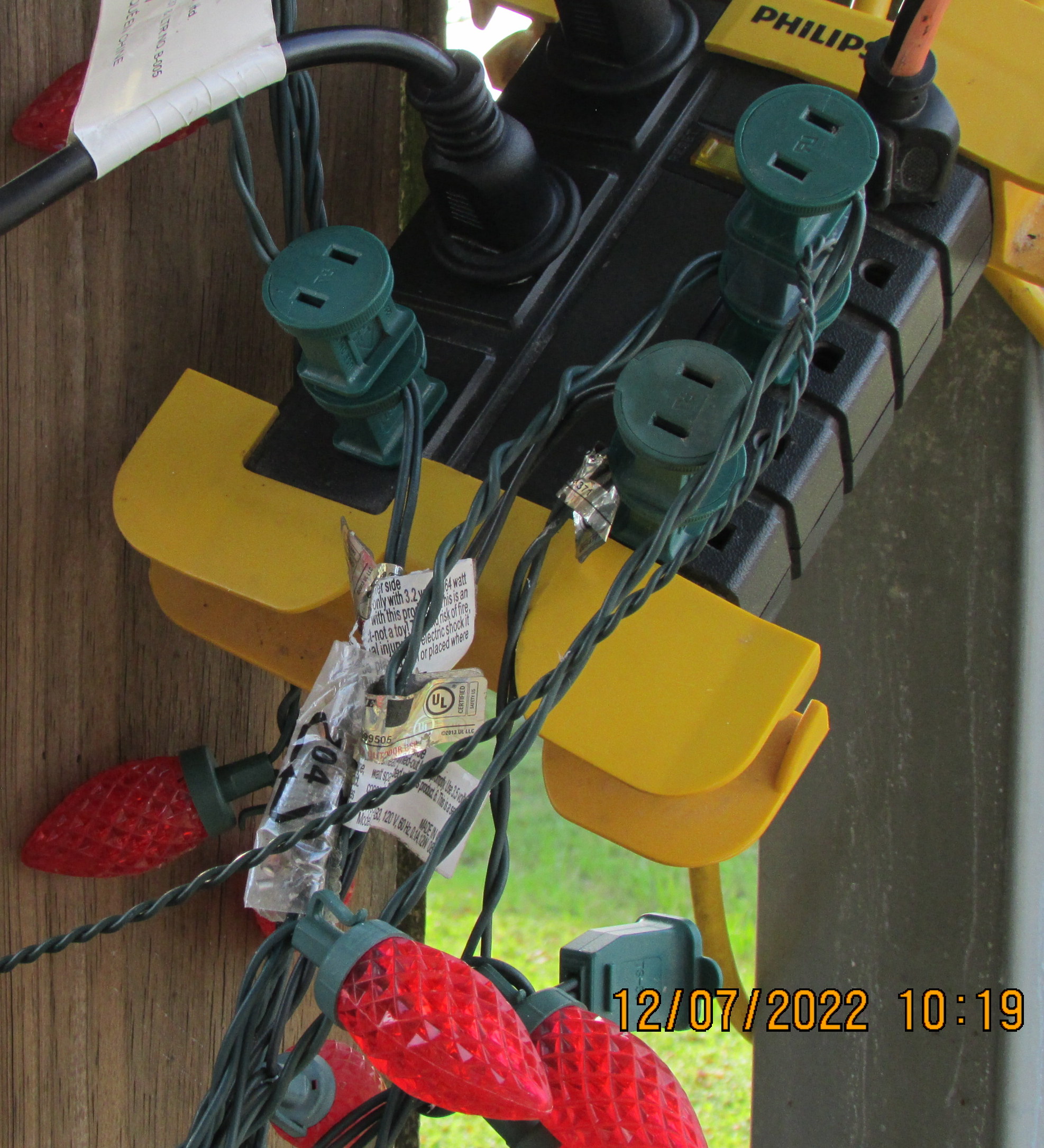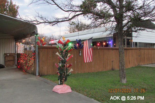 Because two strings of lights failed… and I desire an attractive, well-lit tree, I helped myself to unused lights. Yes, extra RV Park decorations had been packed away (for another Christmas?), and (in my small way) I’m helping to decorate the Park. But decorating the bottle Christmas tree will wait for another day. My energy is empty!