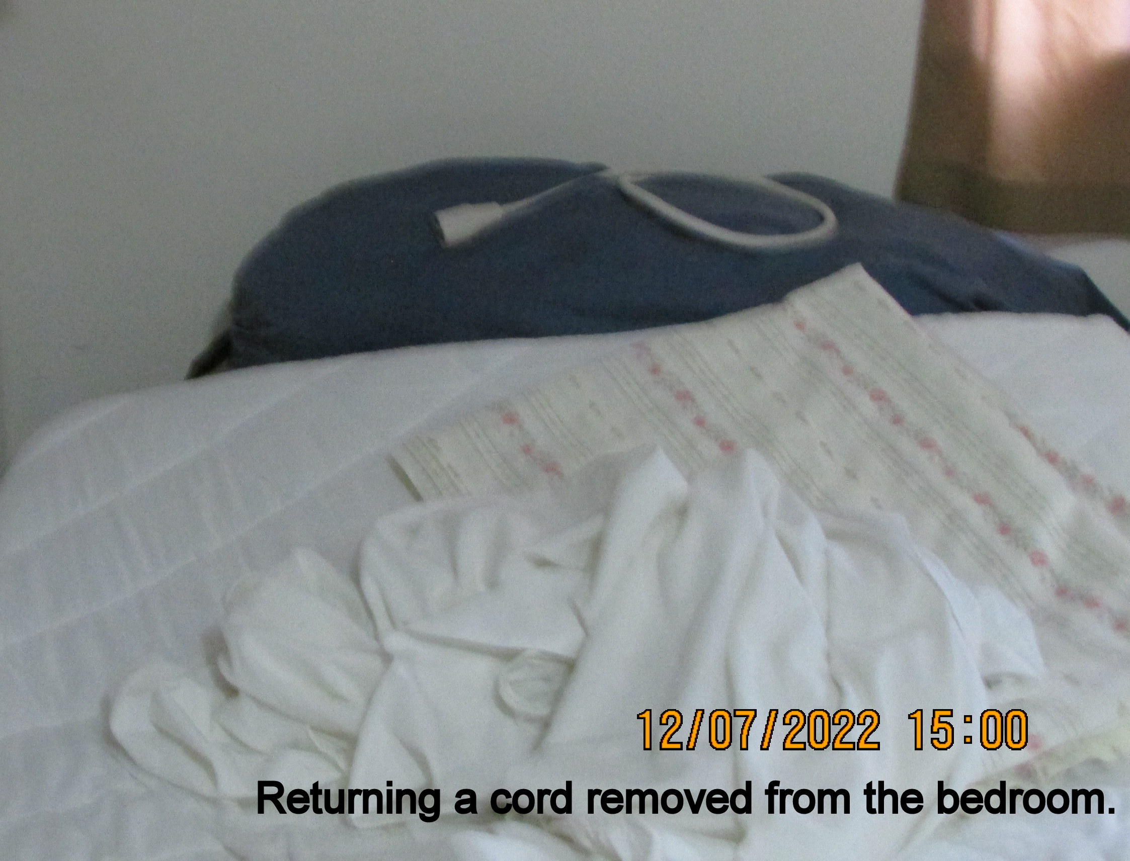 One more thing… Reattach a few things in the bedroom after the earlier departure of the electric cord (and make the bed with fresh-washed sheets). ~~ “Robbed Peter to pay Paul,” I already owned all the necessary items for the lighting project.