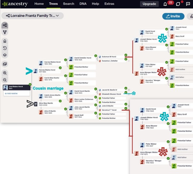 “Love” was lavished on my genealogy family Feb14 by Lorraine Frantz Edwards . . . Documentation took almost all day and the charts are time-consuming (and a challenge). Add “a mouse problem” and that explains my activities today. Share this: Click to share on X (Opens in new window) X Click to share on Facebook (Opens in new window) Facebook Like Loading...