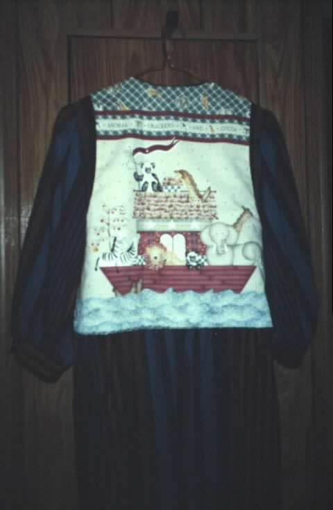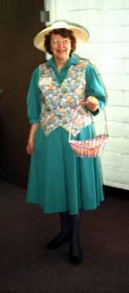 “Yours truly” had a large wardrobe of vests (in Lancaster, California). To the left, the outfit worn to Church on Easter Sunday (2002 or 2003?). On another occasion, the vest with Noah’s Ark. ~~ (I’m making slow progress with pictures from “the cloud” but delightful to walk down “Memory Lane.”)